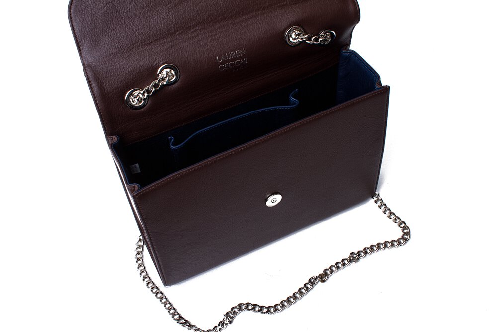 Imagine the deepest and most luxurious hue of indulgent chocolate, accented perfectly by polished hardware, and garnishing the iconic hand-stitched ribbing you’ve come to know and love from the timeless Lauren Cecchi New York line. The Chocolate Mezzo is indeed a yummy treasure, ideal for either a daytime excursion or an evening rendezvous. This 100% Italian leather handbag features an ample 50-inch adjustable gold or silver chain, allowing for numerous style options. With a convenient inside pocket and hidden snap closure, the classic Chocolate Mezzo is an anywhere-bag and your ideal accessory for any season.