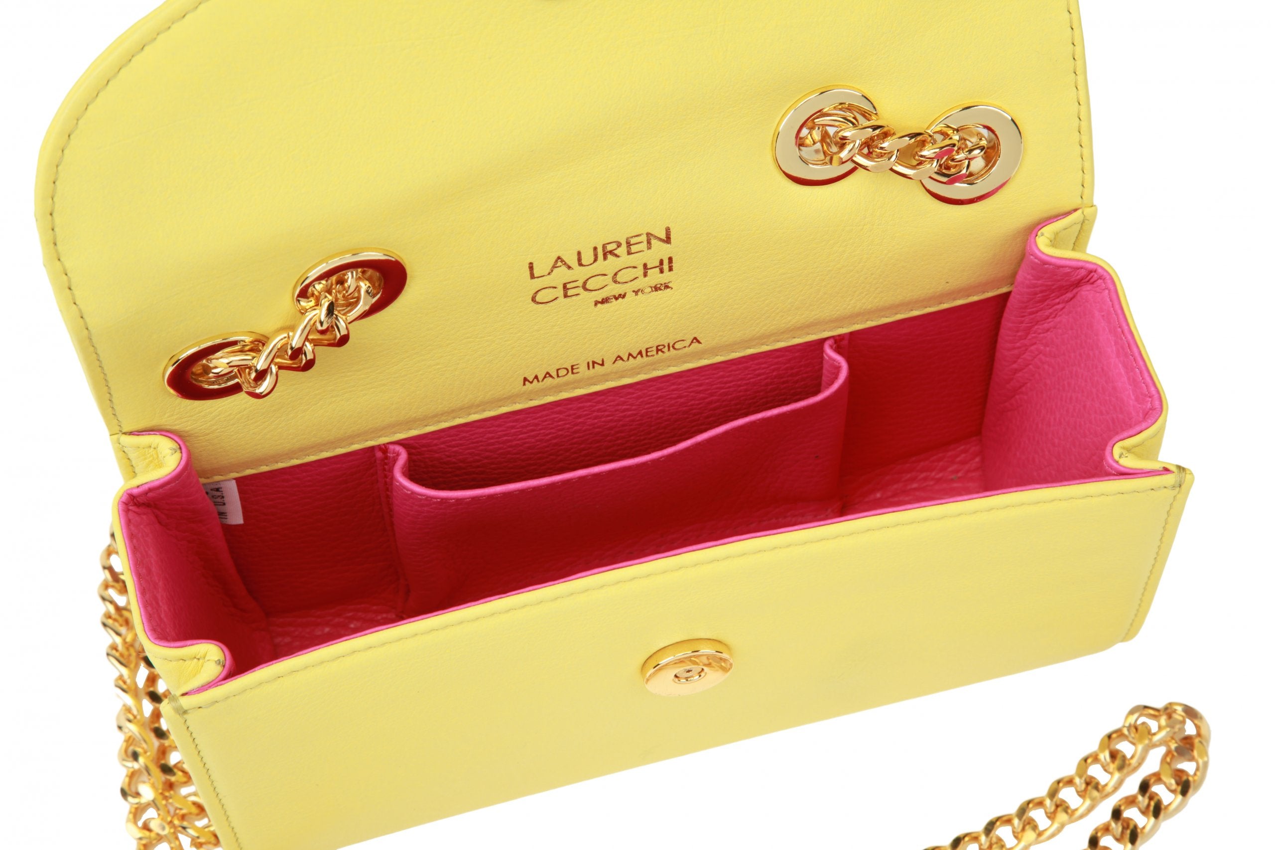 When life gives you lemons... screw the lemons and get your favorite lemon colored handbag! The new Lemonade Sorella is the season's hottest color for that perfect pop of color to complete any look. Wear the Sorella handbag long strap, double strap, cross body or wrap the chain around your wrist for some much needed arm candy.