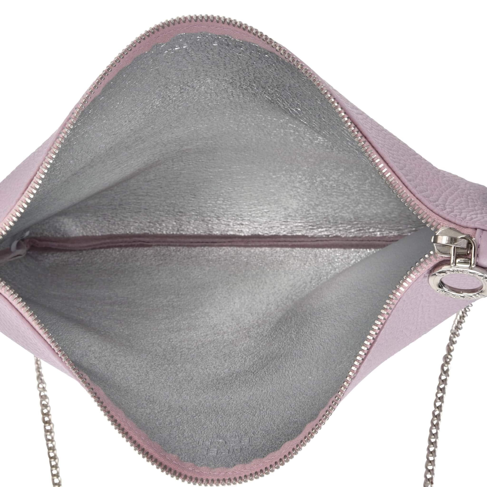Draped in soft, supple leather this season’s Fold-Over Clutch is the new standard in fashion. Inside the ample interior lies a luxuriously silver metallic lining that perfectly juxtaposes the dusky orchid color of the exterior. Held together using the finest polished hardware that can change from long strap to short and even can be worn cross body.