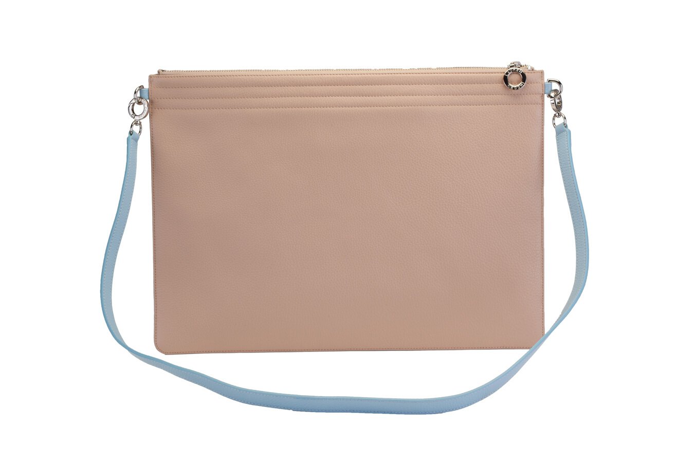 This is your next handbag purchase! It is perfect with summer right around the corner because the color blocking of Sand and Sky Blue is a great neutral and reminiscent of the surf and sand. Can go with any look you decide to pull off because you can decide to show off which side of the color block bag that you want!