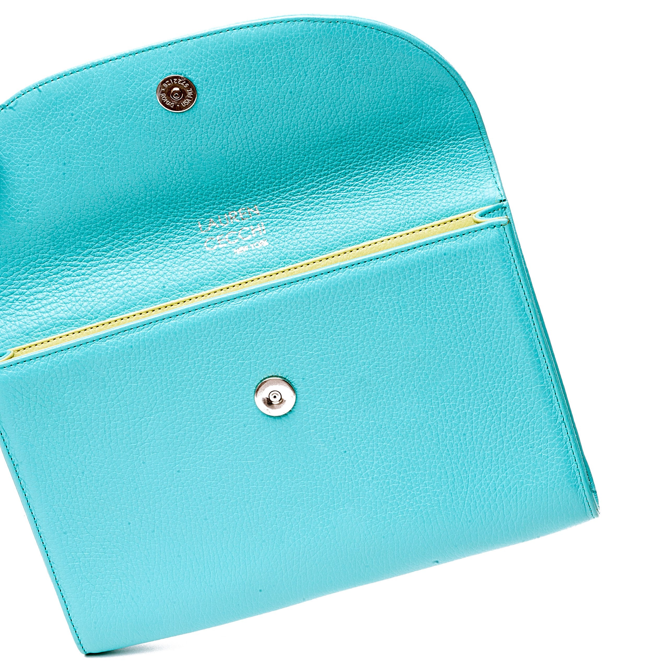 You will be in style paradise while carrying the Paradise Blue Stretta. Featuring the exclusive Lauren Cecchi New York complimentary color combination of Paradise Blue and Honeydew, this opulent turquoise and soft green leather clutch is made of 100% leather. It opens to expose a single pocket and shows off a silver embossed heat stamp logo for a pop of class. The Paradise Blue Stretta is the perfect clutch for your daytime or nighttime wardrobe, with a hidden snap closure securing all your valuables in the most fashionable way possible.
